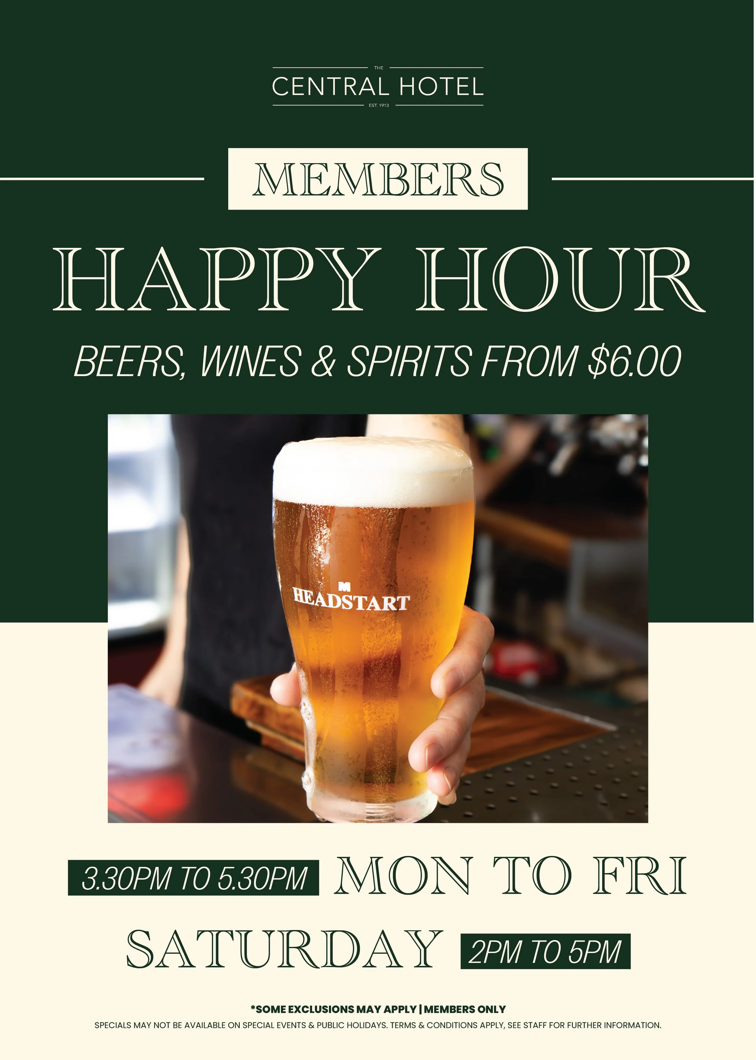 What’s on. With live music every Saturday, locals night & MEAT RAFFLES on thursday, friday NIGHT FOOTY and a SUNDAY POOL COMP, there is always something on at the Central hotel. WEEKLY SPECIALS